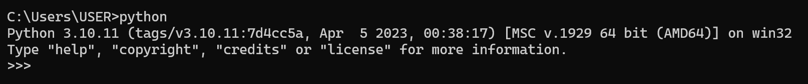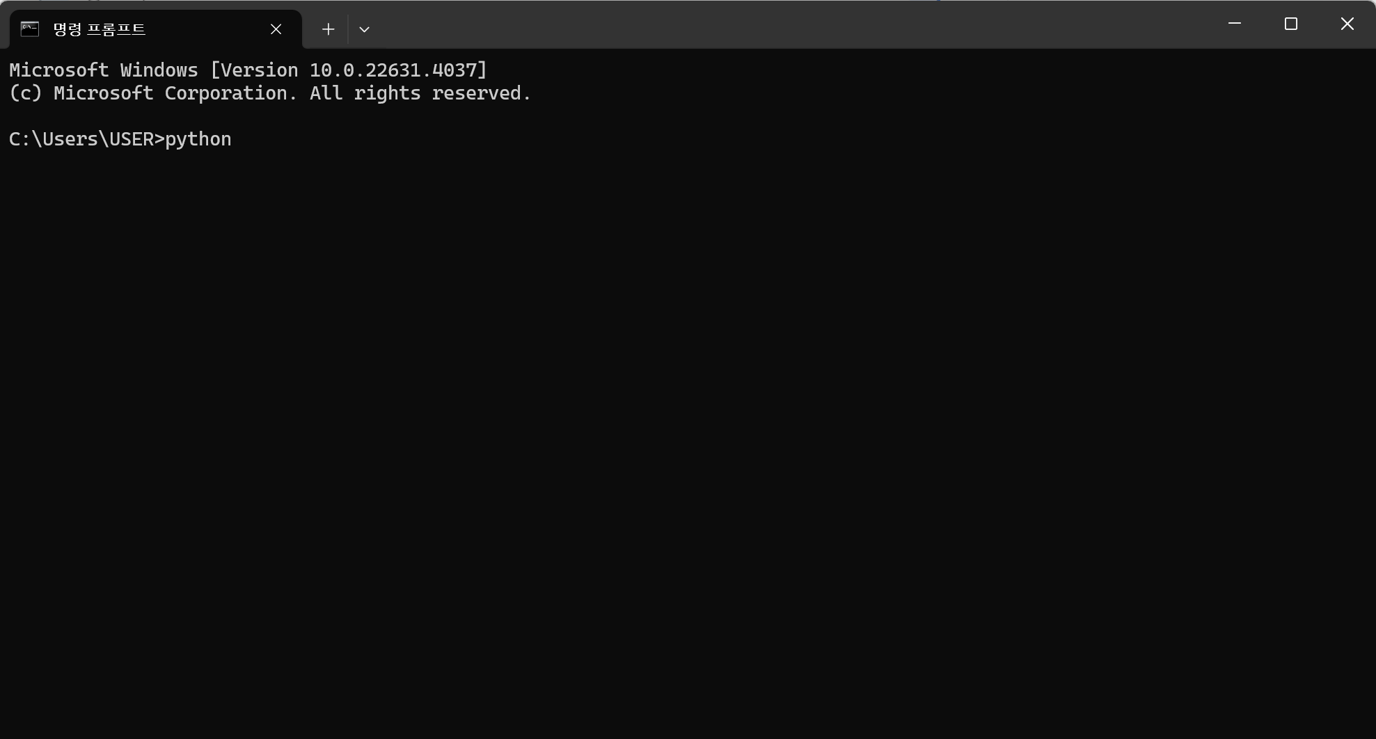- 여기서 python을 입력 후 ENTER를 눌러주세요.