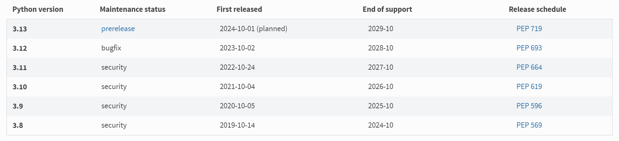 파이썬 버전이 24년 9월 기준으로 3.13 prerelease버전까지 나와있습니다.