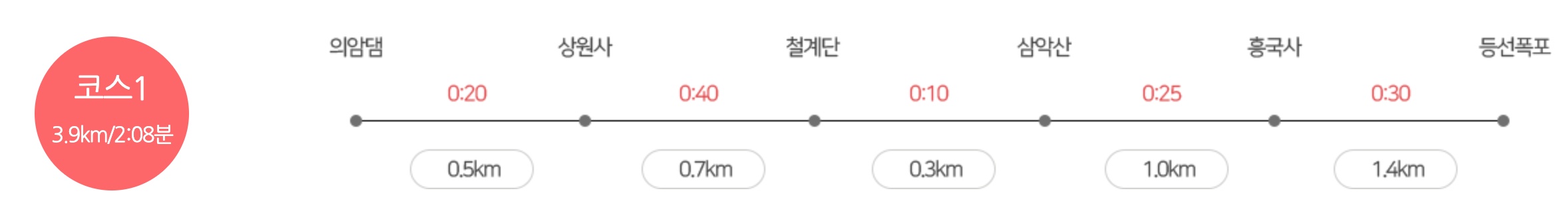3.9Km구간으로 2시간 5분내외의 시간이 소요됩니다.